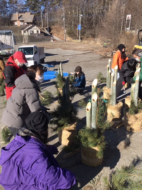 今朝は毎年恒例の萌木の門松作り