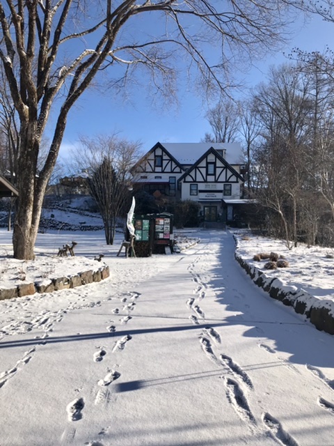 朝起きたら雪降りました、ほんの少しですが、朝は真っ白いい感じです、寒得もマイナス6度越えで30%オフ 活用してね