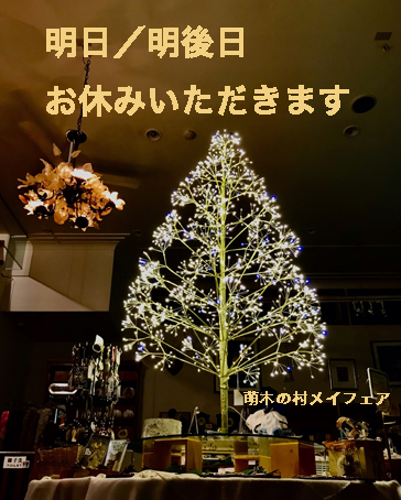 水木休みなので気をつけて、金曜日からのお越しをお待ちしております、今週末は、萌木のクリスマスプチマルシェです
