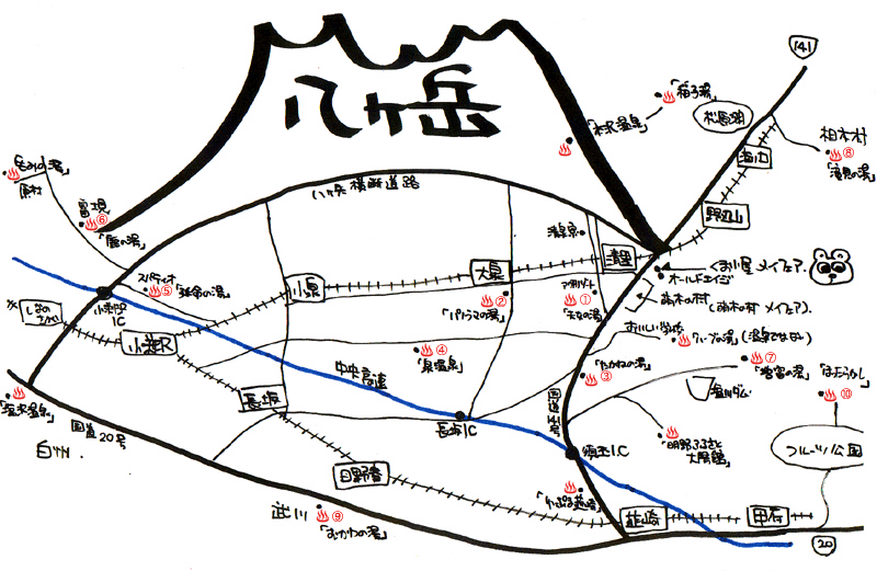 八ヶ岳周辺には、このほかにも山のお上の本沢温泉、稲子湯、 ぐるっとまわって唐沢鉱泉、奥蓼科に渋をはじめとする味のある温泉、 原村のもみの湯や、尖石温泉、横谷峡温泉などなど、ぐるっとたくさんありますね、すこしづつ広げていきましょう!
